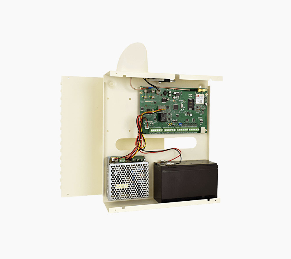 Comunicatore 4G (integrato) e modulo IP LAN (opzionale) per l’invio di messaggi di allarme e speciali (manomissioni, avaria GSM, assenza rete, etc.) in fonia, Contact ID, SMS, digitali IP (SIA DC-09) e per email con identificazione di area, zona ed evento.